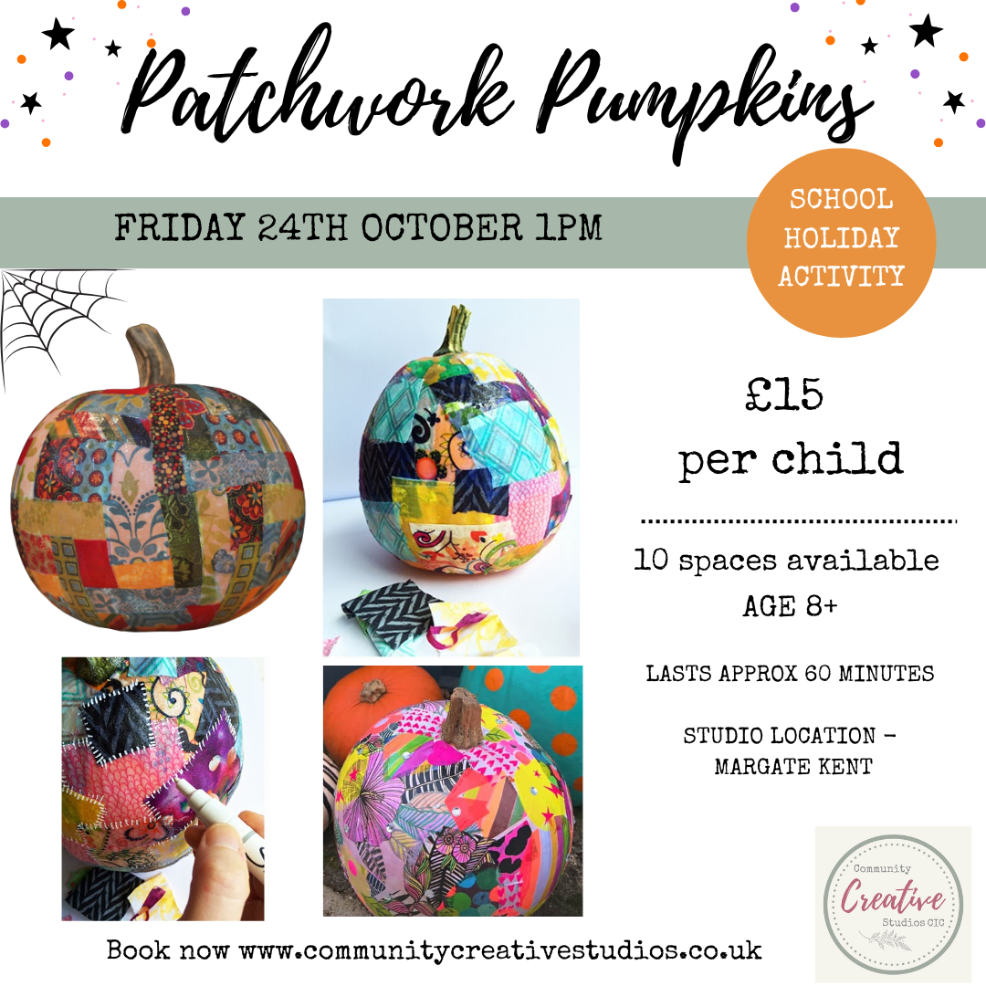 Our afternoon patchwork pumpkin activity is going to be something a little different. We will be using actual pumpkins and using a decoupage technique with papers and fabric will create a fibrant and unique patchwork pumpkin.